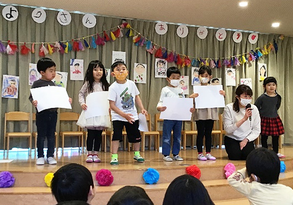 卒園するたいようぐみの友だちのために、つきぐみ主催のお別れ会をしました。クイズやダンスと手作りのプレゼントで、今までのお礼の気持ちを込めておもてなしをしました。